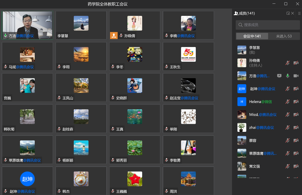 4月28日晚,学院召开线上全院教职工大会,传达当前疫情形势和有关要求,对“树师德 正师风”专项活动进行动员,并对米乐·M6(China)官方网站“十四五”规划建设和“临床医学与重大疾病”双一流学科药学支撑学科建设方案及考核指标进行学习和部署。学院领导班子成员出席会议,全体教职工参加会议。会议由常务副院长方浩主持。