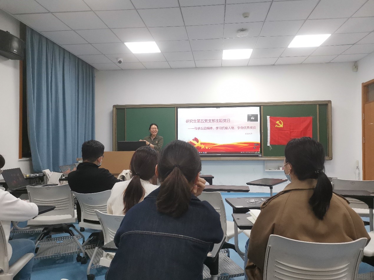 “传承五四精神,争做优秀党员”。4月底,随着封控时间延长,针对部分学生出现的情绪思想波动,研究生第五党支部丰富内容,开展继承“五四精神”主题党日活动,集体学习习近平总书记到中国人民大学考察时的重要讲话精神,并通过讲述钟南山、陈薇、白晓卉等抗疫英雄的抗疫故事,用伟大抗疫精神激发爱国情感,引领青年党员凝心聚力、共克时艰,继承“五四精神”优良传统,厚植红色基因,以先锋事迹为例,讲好抗疫故事。
