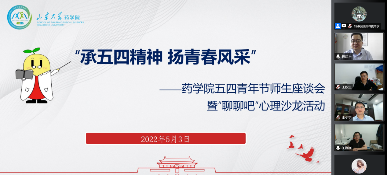 5月3日上午,米乐为宣传当代药学青年以实际行动传承和践行五四精神的优秀事迹,进一步加强学院党政班子与同学们的思想交流,了解同学们的学习、生活与精神状态,通过线上形式举办了“五四”青年节师生座谈会暨“聊聊吧”心理沙龙活动。院长鞠建华,党委书记王秋生,常务副院长方浩,副院长王小宁、沈涛,党委副书记张慧、王巍巍出席会议,学院全体辅导员老师,优秀学生代表,本科生及研究生团支部书记30余人参加座谈交流活动。