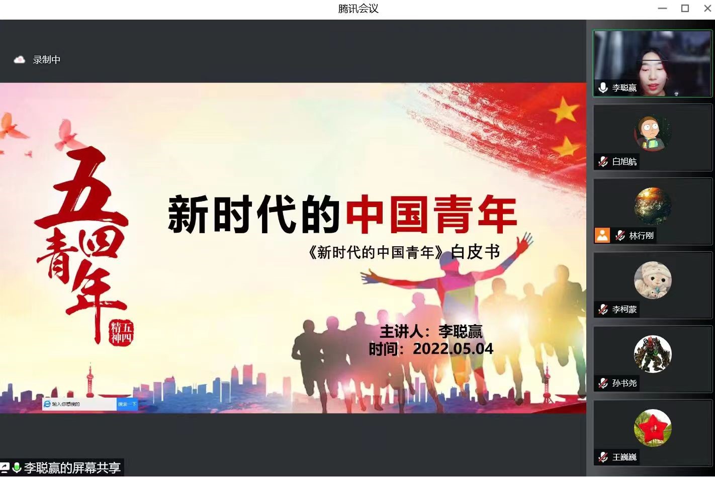会议交流阶段,参会学生党员围绕主题学习分享内容踊跃发言。何诗仪同志感慨要立足当下,展望未来做新时代中国青年,张子儒同志认为青春是用来奋斗的,要不断进步。教工党员李冬老师和董芹老师分别对本次主题学习交流活动进行点评,指出一代人有一代人的使命,一代人有一代人的长征,五四的精神永远不会消失,新的时代正赋予其新的意义。