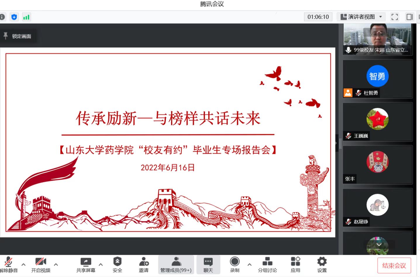 6月16日,米乐·M6(China)官方网站线上举办“校友有约”毕业生专场报告会,邀请知名校友宋超到会做专题报告。本次报告会由优秀毕业生王艺铭主持,学院党委副书记王巍巍、辅导员周现民及2022届毕业生参与本次活动。
