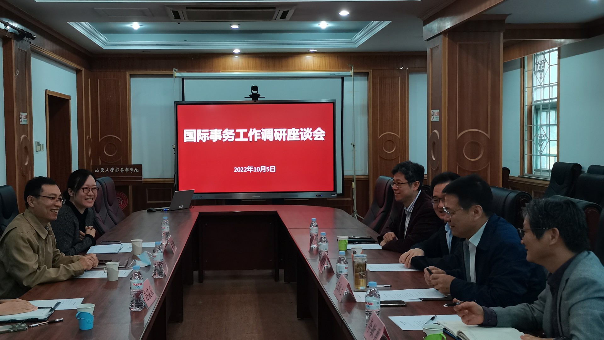 2022年10月5日,学校国际事务部部长孙凤收、副部长姜宏敏来米乐·M6(China)官方网站调研,就国际化工作进行座谈交流。米乐·M6(China)官方网站院长鞠建华、党委书记王秋生,常务副院长方浩、副院长李敏勇等参加了本次座谈。