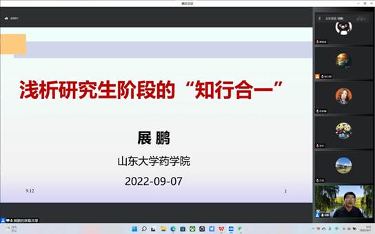 导师代表展鹏以“知行合一”为主题,从自身成长经历出发,勉励新生学会规划安排,做到坚持专注,学会团结协作。此外,学院组织新生观看医学人文教育系列讲座——山东大学校史与文化,引导研究生新生厚植家国情怀,传承山大基因。