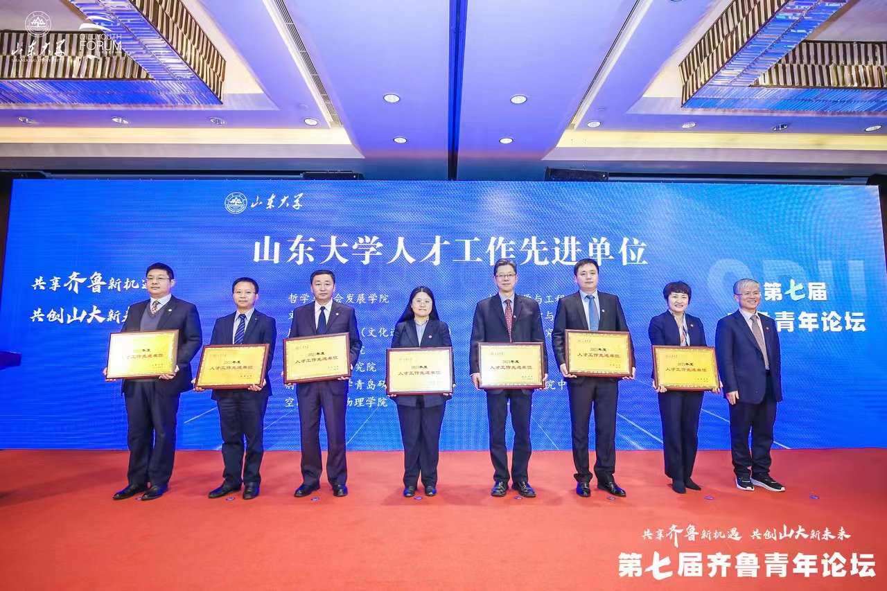 11月11日,在山东大学齐鲁青年论坛主论坛山东大学人才工作先进单位表彰环节中,米乐·M6(China)官方网站因在人才队伍建设方面取得的突出成绩和显著进步获得山东大学2021年度人才工作先进单位荣誉奖牌。