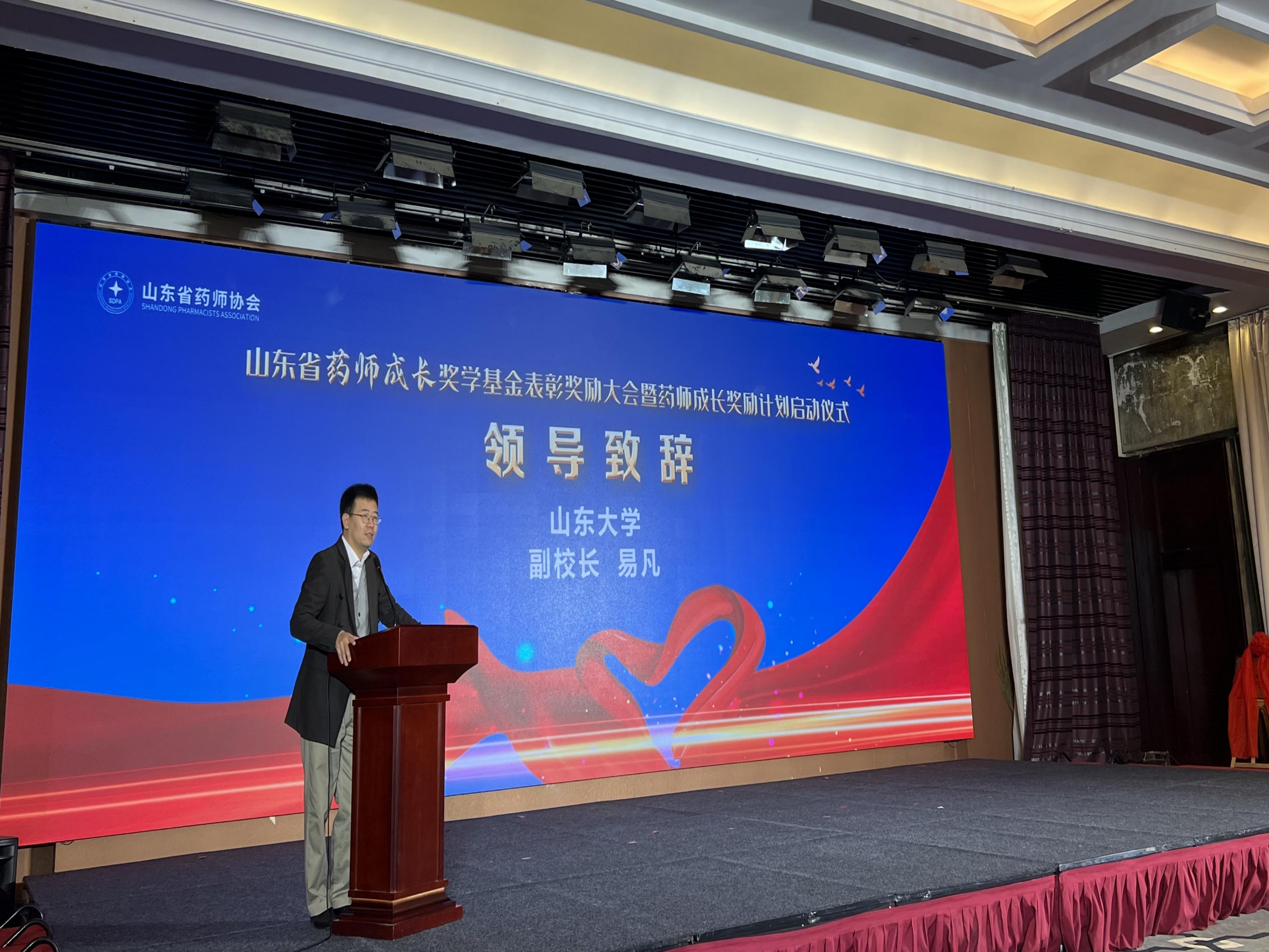 易凡从发展历史、科学研究、人才培养、队伍建设等方面介绍了山东大学及齐鲁医学基本情况。他表示,党的二十大报告中对教育、科技、人才进行系统谋划,并对新时代新征程上推进健康中国建设作出新的战略部署,这为学校下一步教育和卫生健康事业发展提供了根本遵循。“山东省药师成长奖励计划”体现了山东省药师协会积极为党育人、为国育才事业的高度社会责任感,希望双方进一步深化合作,共同推动全省药师队伍建设和药学事业健康发展,为“健康中国”战略的实施和“健康山东”建设贡献力量。他对全体获奖同学表示祝贺,鼓励同学们心怀“博极医源”的信念,苦练内功、精进学业,真正成为公众科学用药的建设者和生命质量的守护者。