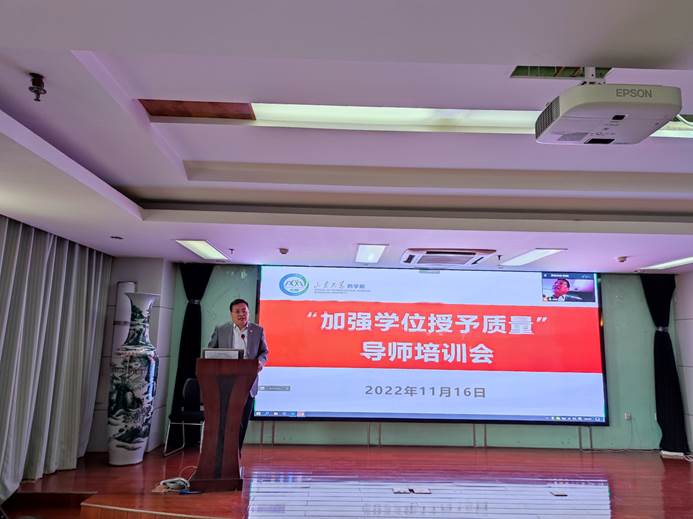 11月16日,米乐·M6(China)官方网站以线上线下相结合的方式召开“加强学位授予质量”导师培训会。米乐·M6(China)官方网站党委书记王秋生、院长鞠建华、常务副院长方浩及研究生导师参加培训会,会议由副院长沈涛主持。
