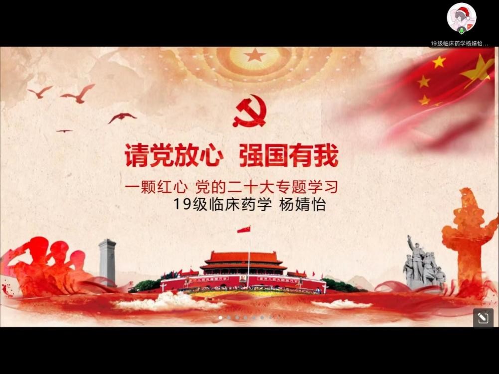 杨婧怡分享了新时代夺取反腐败斗争压倒性胜利的关键举措。她利用医药行业近年来出现的反腐败案例,生动地讲述了国家采取的强有力举措、取得的显著成效。王湘月分享了党的二十大报告中有关乡村教育振兴的相关内容。作为山东大学第25届研究生支教团一员,她从自身出发,呼吁同学们积极参与寒暑期支教等社会实践活动,为乡村振兴贡献青年力量。陈雯带领大家逐字逐句解读了党的二十大报告中关于“推进全面依法治国,推进法治中国建设”和“坚定不移全面从严治党,深入推进新时代党的建设新的伟大工程”两个主题的相关内容。随后,她与同学们共同探讨了“如何做共产主义远大理想和中国特色社会主义共同理想的坚定信仰者和忠实实践者?”这一话题,引起了同学们的热烈讨论。