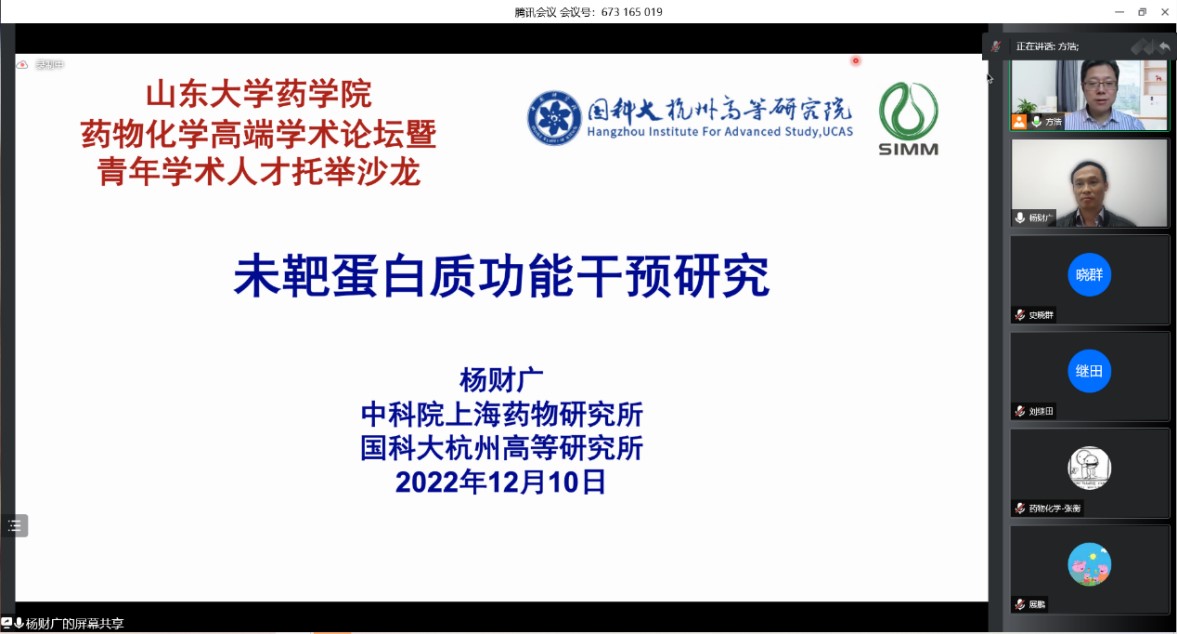 12月10日,米乐药物化学高端学术论坛暨青年人才托举沙龙通过线上方式成功举办。本次学术论坛旨在为优秀青年科技工作者提供一个高水平、大范围、多领域的学术交流平台,特邀清华大学刘刚教授、四川大学秦勇教授、兰州大学许兆青教授、中山大学胡文浩教授、华东理工大学李洪林教授、复旦大学李聪教授、中国科学院上海药物研究所杨财广研究员共7位国内药物化学知名专家作专题报告。米乐·M6(China)官方网站院长鞠建华致开幕词,常务副院长方浩、副院长李敏勇分别主持论坛。