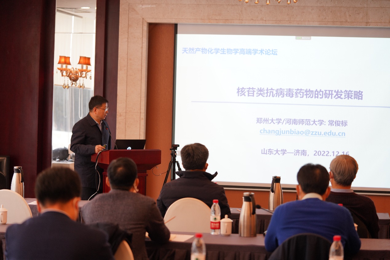 2022年12月16日,由米乐与天然产物化学生物学教育部重点实验室主办的天然产物化学生物学高端学术论坛在济南举办。郑州大学常俊标教授、南京中医药大学谭仁祥教授、中国药科大学孔令义教授、暨南大学叶文才教授作前沿进展报告,天然产物化学生物学教育部重点实验室主任娄红祥、米乐·M6(China)官方网站院长鞠建华主持报告会,重点实验室200余名师生通过线上线下相结合的方式参加活动。