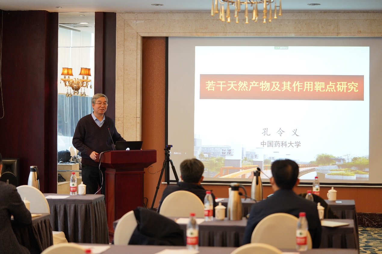 孔令义教授报告题目为“若干天然产物及其作用靶点研究”,介绍了其课题组在复杂结构天然产物、结构修饰和药理活性、潜在药物新靶点以及新型先导化合物发现方面的研究。课题组从多种药用植物中分离鉴定了具有全新碳骨架和强药理活性的柠檬苦素、乌药烷倍半萜类、树脂糖苷类和睡茄内酯类天然化合物,并应用到肝病治疗新药研发中。