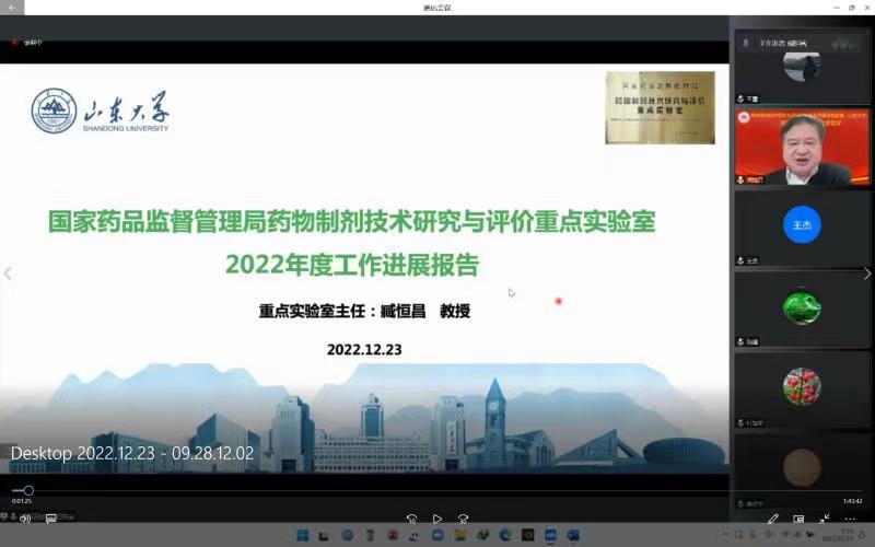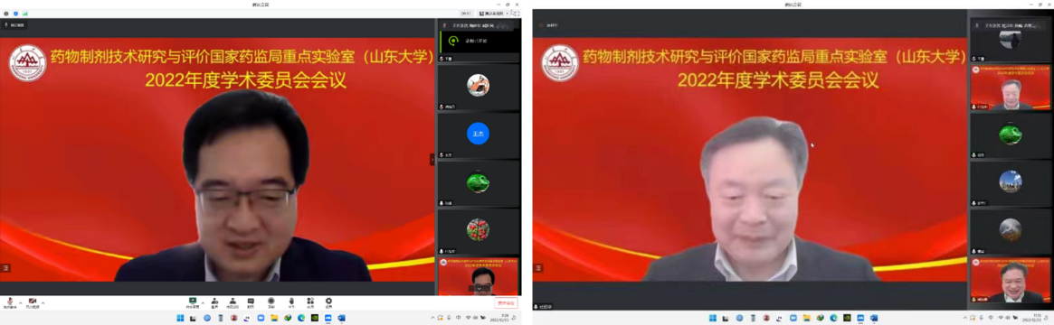 为响应党的二十大报告中关于教育、科技、人才三位一体的战略统筹部署,加强国家药监局重点实验室建设,加快聚集和培养优秀人才,加速研究成果产出和转化,充分发挥学术委员会在重点实验室建设发展中的重要作用,12月23日,国家药品监督管理局药物制剂技术研究与评价重点实验室(以下简称药物制剂重点实验室)2022年度学术委员会会议成功召开。会议由山东大学齐鲁医学院副院长刘奇迹主持,山东大学副校长、齐鲁医学院院长易凡,山东省药品监督管理局副局长李涛,山东大学科学技术研究院院长周传健线上出席会议并致辞。中国医学科学院、中国协和医科大学药物研究所副所长、国际欧亚科学院院士、药物制剂重点实验室学术委员会主任委员杜冠华,学术委员会副主任邵学广、陆峰,学术委员会委员王杰、王维剑、王成、吴志生、唐星,米乐院长鞠建华,药物制剂重点实验室主任臧恒昌及全体骨干成员参加活动。