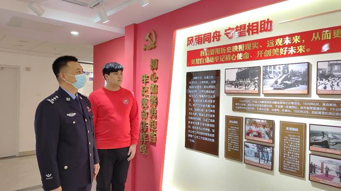 会后,梁宇嘉在民警讲解下参观了机场分局“党心警汇”党建主题展览馆,深入了解了近期机场分局的党建建设成果和机场分局成立以来的发展历程,加深了彼此了解。