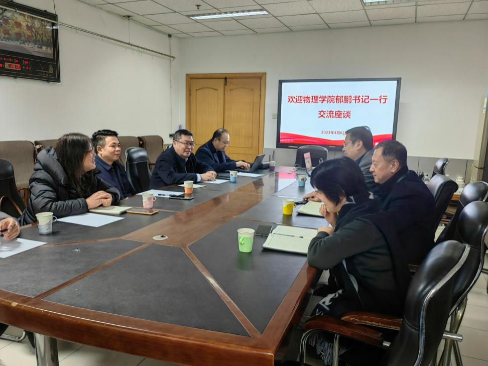4月6日下午,山东大学物理学院党委书记郁鹏一行5人来访米乐·M6(China)官方网站,就学院校友会等工作举行座谈交流。学院党委书记王秋生、五级职员徐文忠、党委副书记张慧等出席座谈。