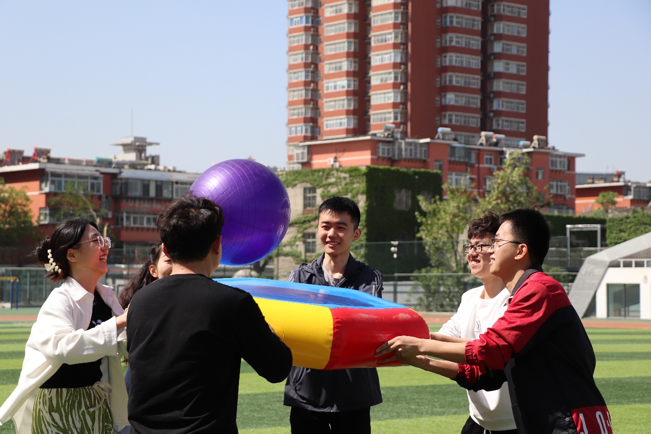 经过前期的自行组队和随机分配,共有18支队伍,共计186名师生参与。活动内容包括“两人三足”“同舟共济”“绝密押运”“众星捧月”,另有“急速60秒”头脑风暴、“沙包投掷”“趣味保龄球”等智力与体力相结合的项目。不同的项目内容虽有差异,但同样考验着团队之间的彼此配合、练习试错、配合争先、思考筹划的协作能力。一阵阵欢声笑语,一次次欢呼雀跃,享受运动的乐趣,感受师友的情谊。活动设置的学术交流卡和抽奖环节充分愉悦了赛事氛围。
