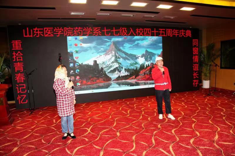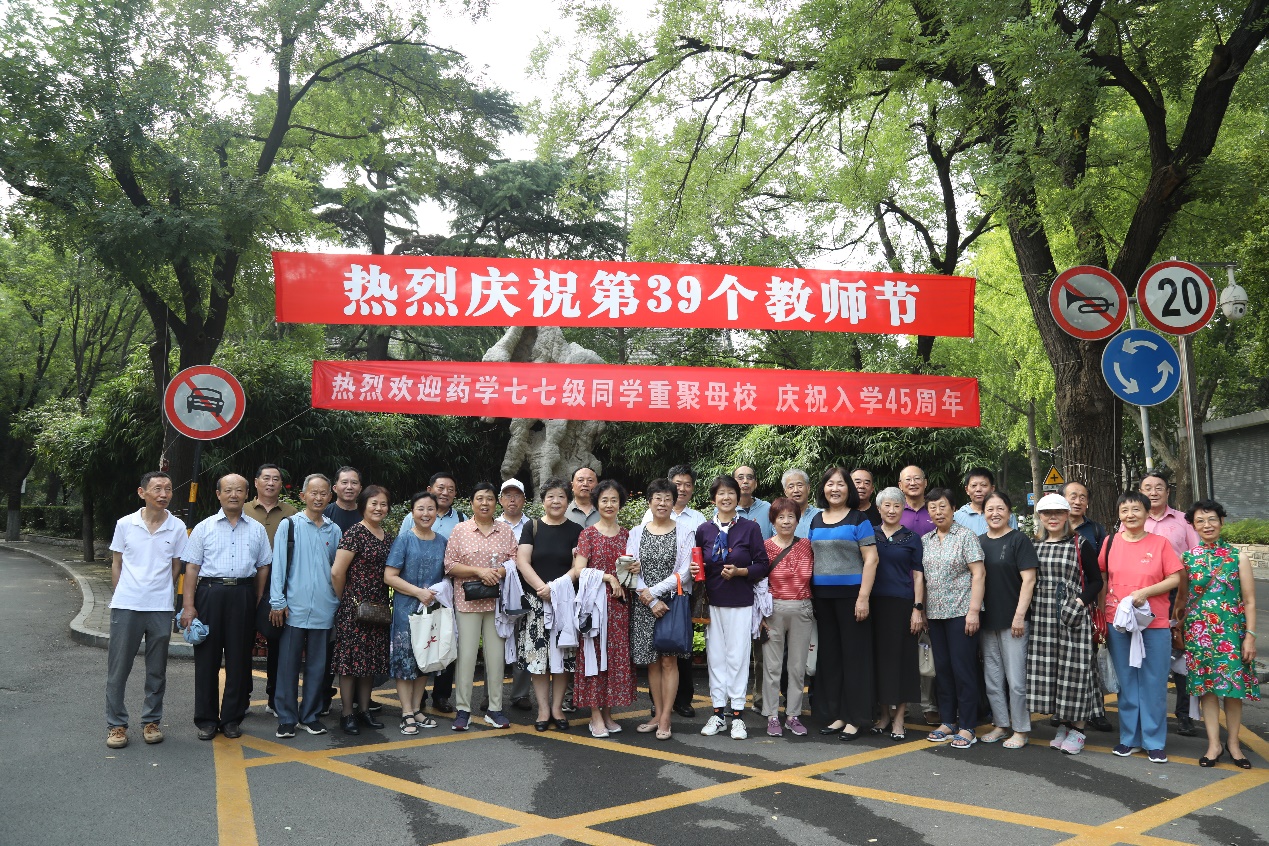 一朝沐杏雨,一生感师恩。两位老班长代表同学们发言,感谢母校的培养,简要总结了同学们在药品生产领域、药物研发领域、药事管理领域、药学教育领域等各岗位上四十年的耕耘和收获。