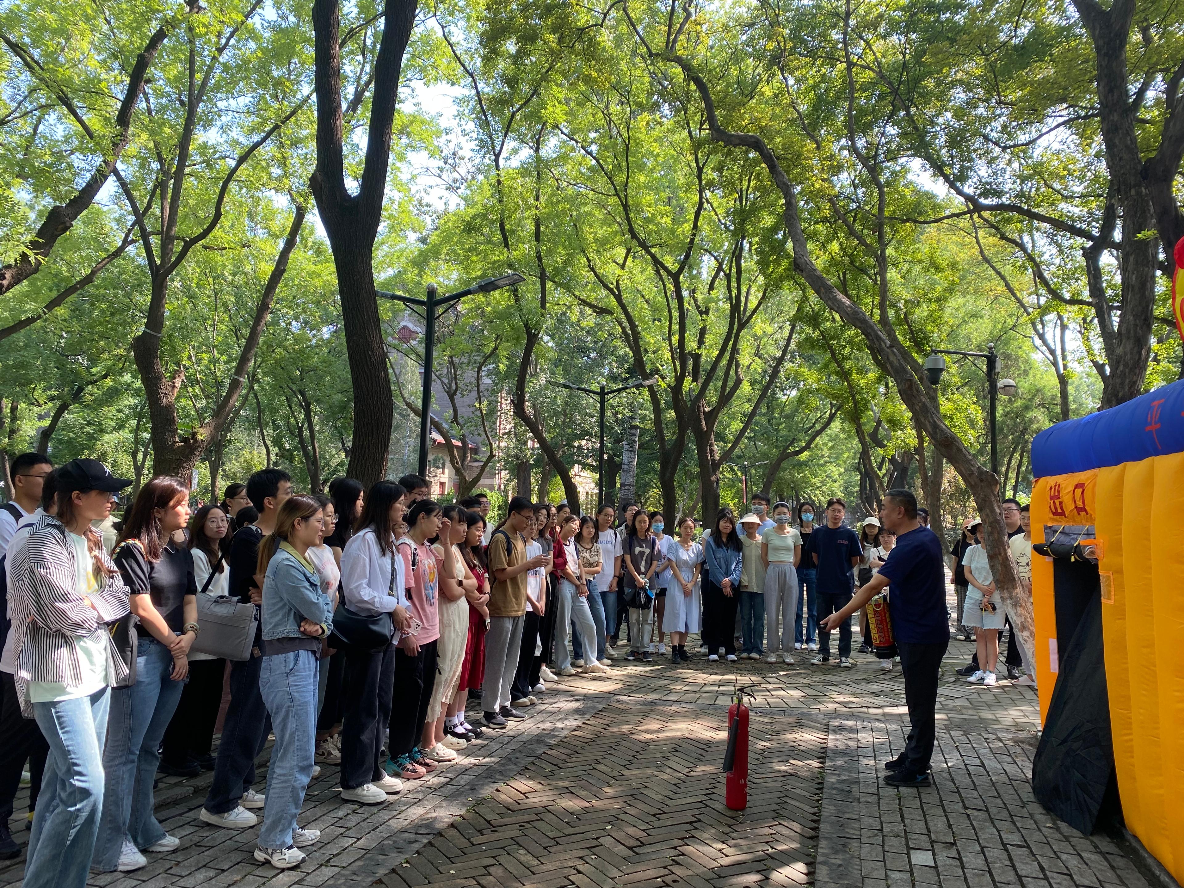 9月13日上午,学院邀请趵突泉校区保卫部王平平老师开展消防安全演练及安全教育工作。王平平在现场教授了新生不同类别灭火器的使用方法,讲解了生活中的消防安全常识。新生在现场进行了消防逃生演练及灭火器使用模拟演练,提高了自身消防安全意识及逃生技能。