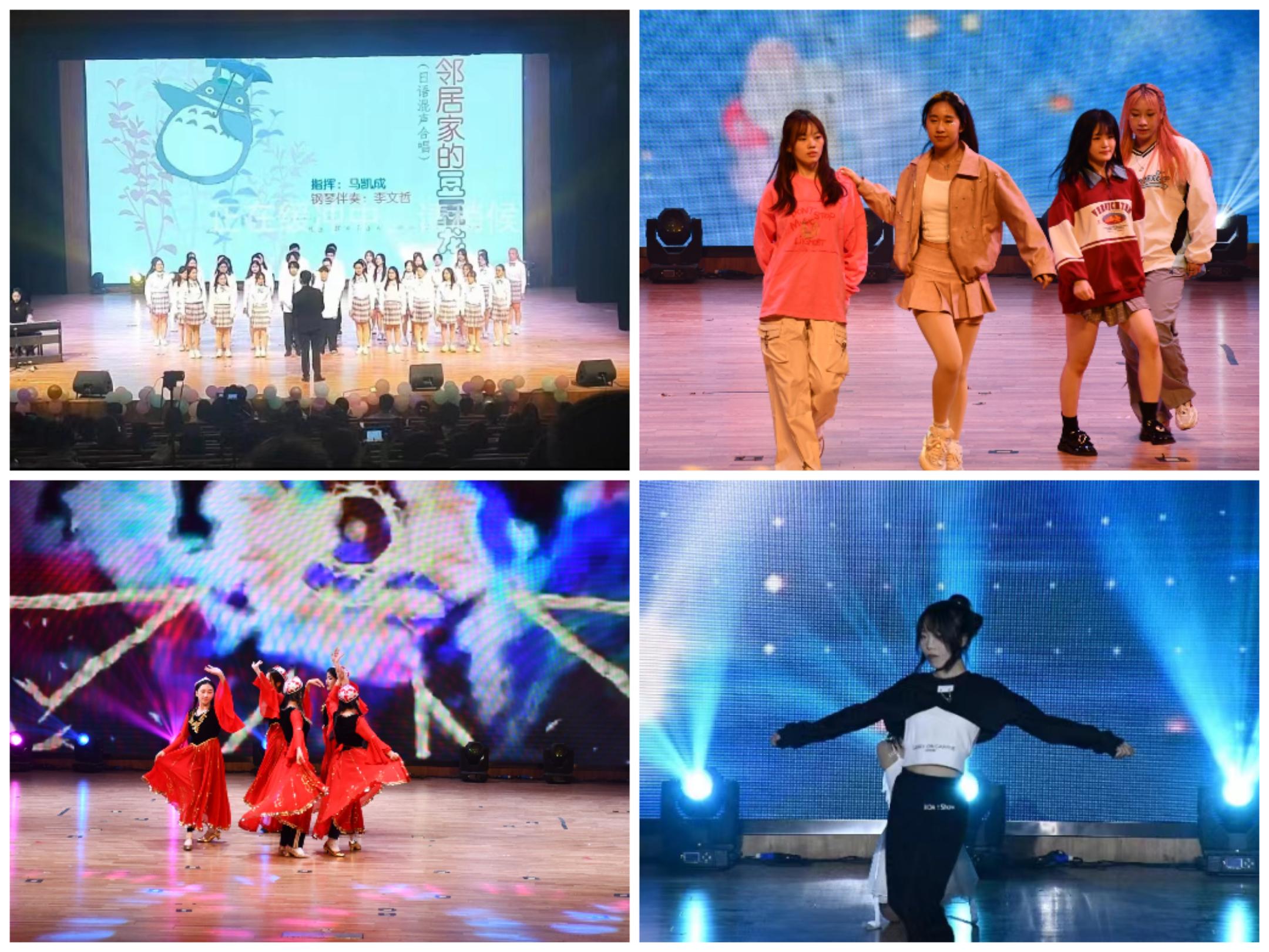 第三篇章的主题为“药你同行,锦瑟年华”。诗朗诵《我的祖国》气势磅礴、铿锵有力,表达了对祖国深沉的热爱和赞美;舞蹈《从现在到未来》《Hots》热情洋溢,动感的音乐配上活力的舞蹈为晚会注入新的激情;歌曲串烧《启程》歌声悠扬,扣人心弦,表达了对生活的热爱和对梦想的追求。晚会最后,全场大合唱《相亲相爱》,全体师生的心紧紧凝聚在一起,药院学子的青春风采在舞台完美绽放。