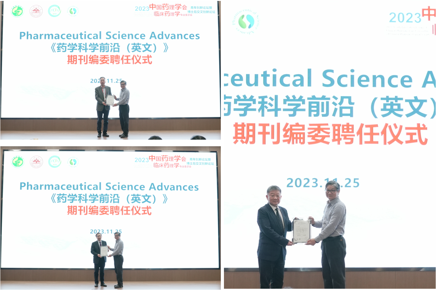开幕式上举行了颁发Pharmaceutical Science Advances期刊编委聘书的仪式。由山东大学主办的Pharmaceutical Science Advances聚焦药学前沿交叉及新药创制,是展示国际药学科学前沿及最新进展的高水平学术交流平台。李敏勇为魏伟、崔一民和刘昭前颁发聘书。