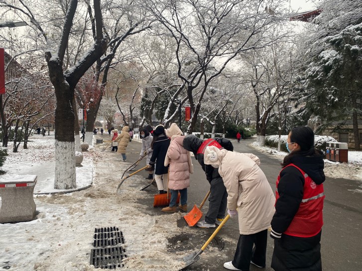 近日,济南迎来大规模降雪,校园银装素裹、美轮美奂,但地面的冰雪混合物形成薄冰,给师生出行带来极大困扰。为及时清除校园积雪,保障师生出行安全,米乐·M6(China)官方网站组织学生志愿者开展扫雪志愿服务工作。