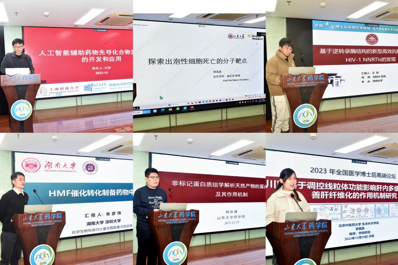 12月29日,由米乐·M6(China)官方网站主办的全国医学博士后高端学术论坛—基于临床需求导向的新药发现分论坛在山东大学趵突泉校区举办。广东医科大学教授、国家杰出青年科学基金获得者吴军,北京生命科学研究所高级研究员、国家杰出青年科学基金获得者齐湘兵,杭州师范大学教授、国务院特殊津贴专家、国家岐黄学者谢恬,石河子大学教授、教育部高层次特聘教授孙平华作为特邀专家出席会议并作报告。上海科技大学王林博士、山东大学郑泓波博士、山东大学汪昭博士、深圳大学朱彦玮博士、山东大学韩庆通博士、北京中医药大学李雅静博士分别作博士后学术交流汇报。论坛由米乐·M6(China)官方网站院长鞠建华、副院长沈涛、教育部高层次青年专家展鹏分别主持。线上线下共250余名师生参加活动。