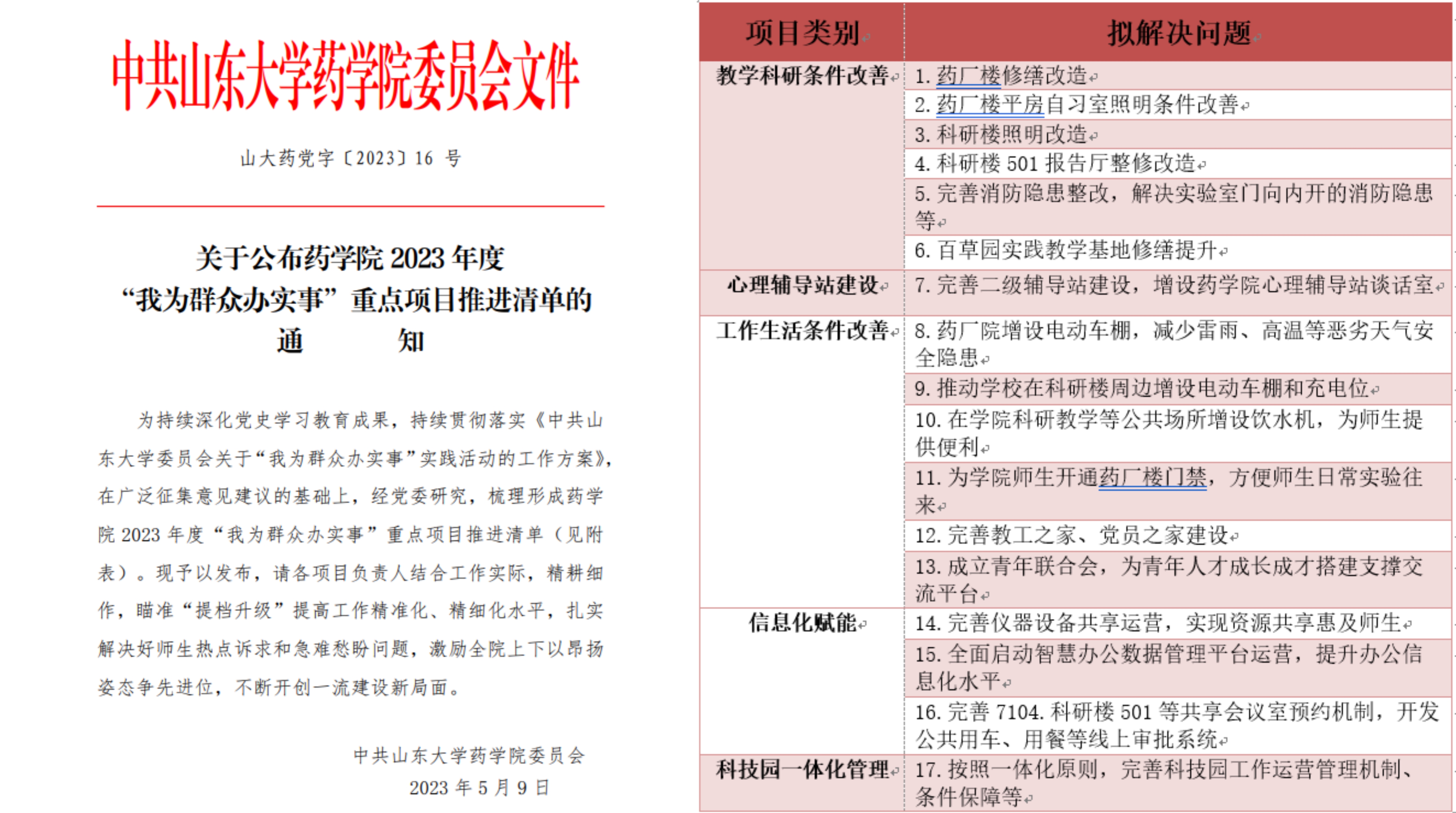 深入调查研究,找准师生关心的“急难愁事”。师生利益无小事,一枝一叶总关情。学院党委通过走访考察、集体座谈等形式,事不避难、义不逃责,在广泛收集师生意见的基础上,研究制订了《米乐·M6(China)官方网站2023年度“我为群众办实事”重点项目推进清单》,分门别类列出17项重点项目,涵盖办学空间、环境改造、困难帮扶、服务质量、文化建设、人文关怀等方面的大事小事、难事实事。
