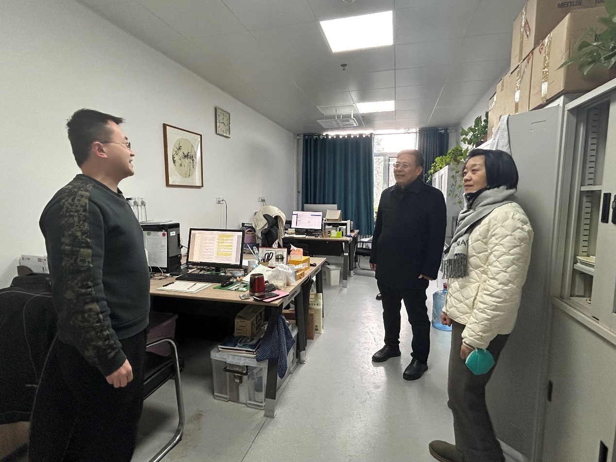 王秋生一行先后走访了景蓝斋、科研楼、药厂楼、教学七楼、国家大学科技园等,现场检查实验室安全、仪器设备运行情况,与各教学科研团队交流新学期工作筹备进度。走访过程中,学院领导向教职工关切询问了寒假工作和生活情况,认真听取了他们对学院工作的意见建议,并勉励大家坚持“守正创新、改革突破”,以奋发有为的实际行动为年度各项工作开好局、起好步、谋好篇。