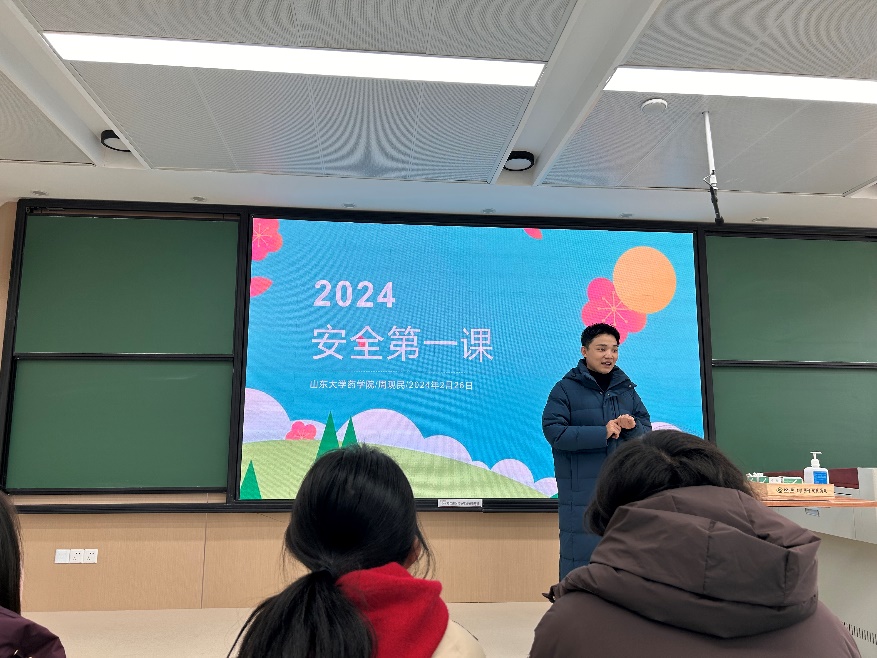 本科生辅导员周现民面向大一学生开展新学期安全第一课,从环境安全、消防安全、交通安全、电动车安全、实验室安全和人际关系等多方面提醒安全注意事项,并从典型事故案例出发,帮助学生们筑牢安全意识。