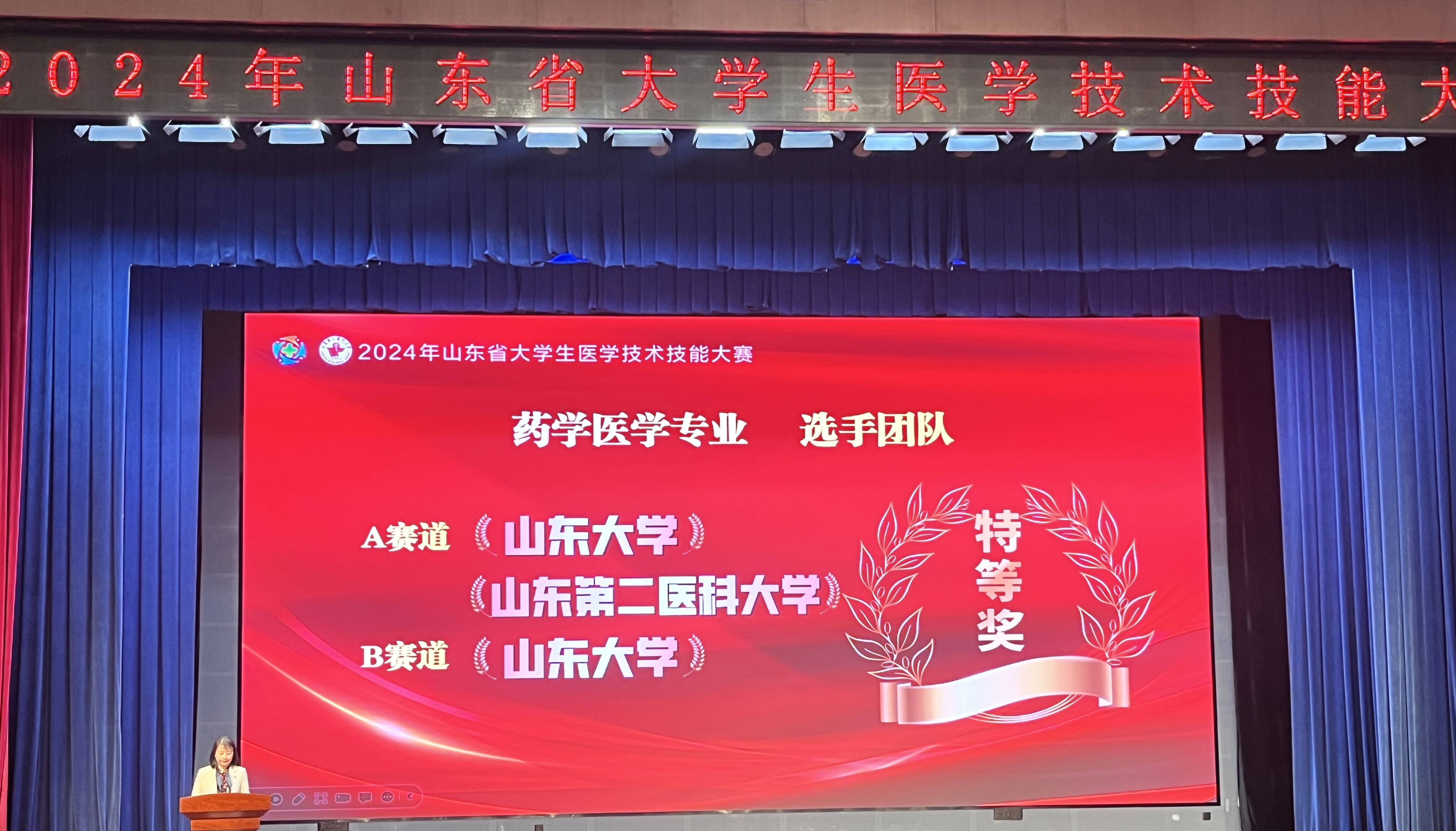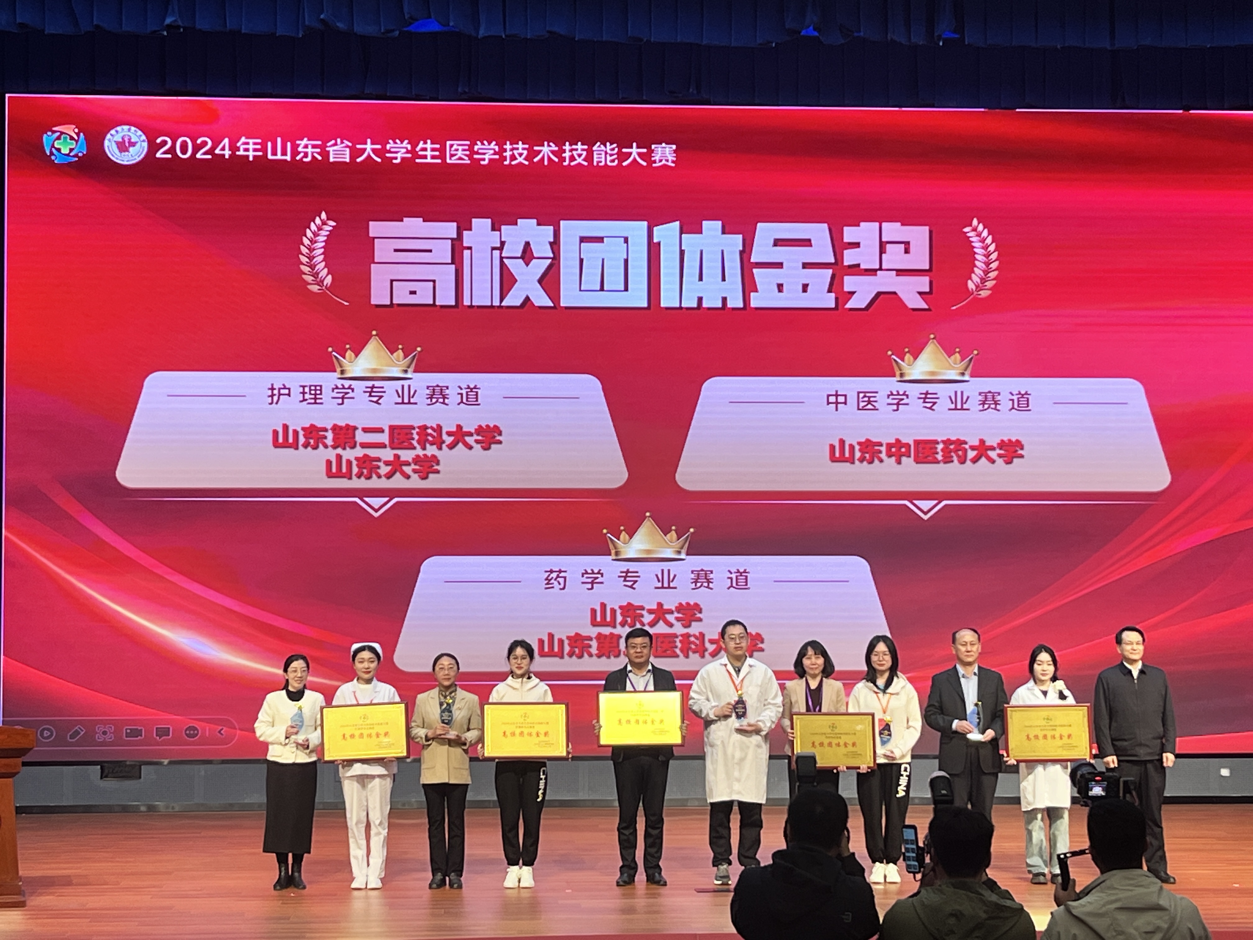3月29日至31日,由山东省教育厅、山东省卫生健康委员会主办的2024年山东省大学生医学技术技能大赛在山东第二医科大学举办。来自22所高校的112支代表队、464名选手参加此次大赛。经过激烈角逐,米乐·M6(China)官方网站荣获A赛道选手团队特等奖、B赛道选手团队特等奖、高校团队金奖、优秀指导教师团队奖。2020级本科生韩莹获得A赛道实践操作“药物化学模块”单项奖,焦润获得B赛道实践操作“药物化学模块”单项奖,2019级本科生王志莹获得B赛道理论笔试单项奖。