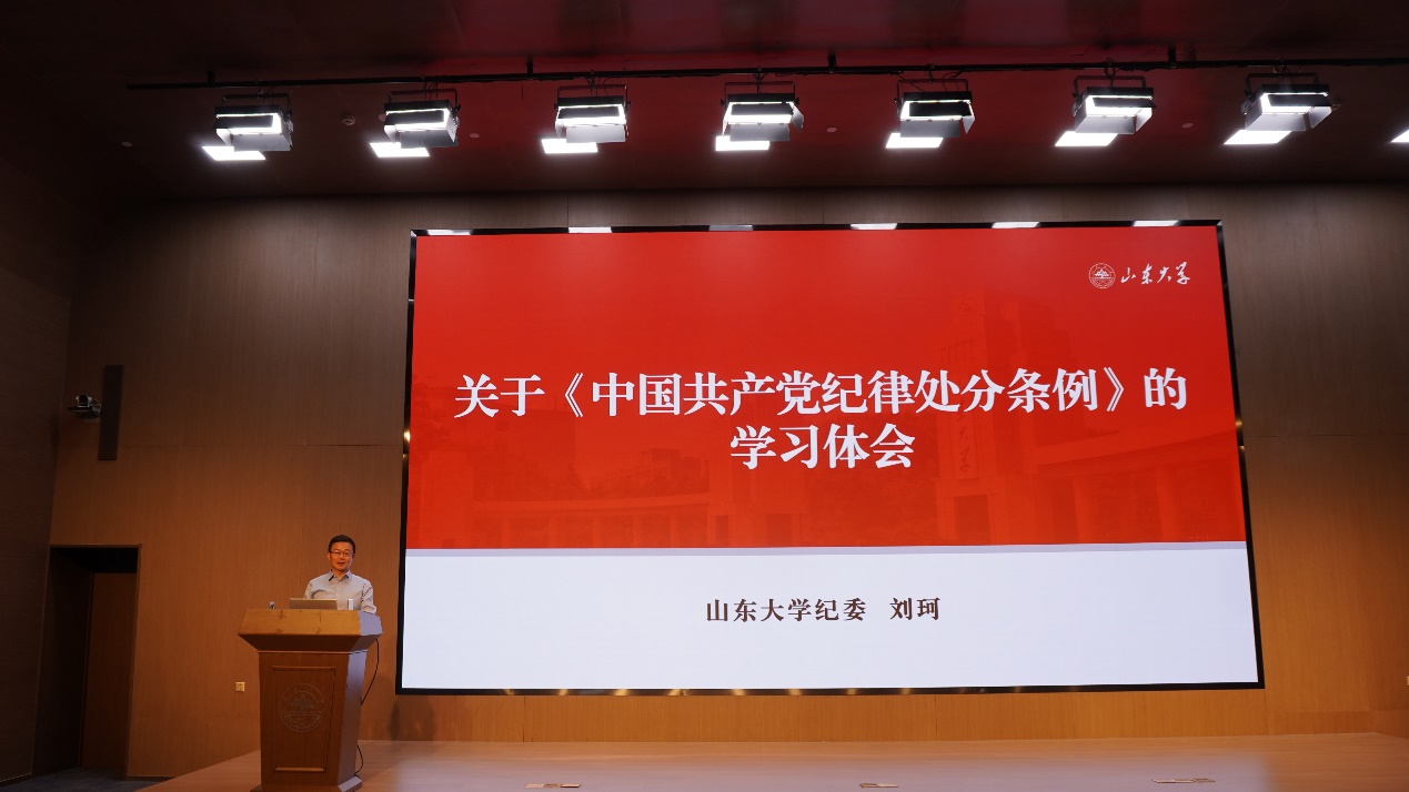 在党纪学习教育专题辅导报告环节,刘珂以“关于《中国共产党纪律处分条例》的学习体会”为题,围绕《条例》“是什么”“新在哪”“怎么做”,深入阐述《条例》主旨要义,重点解读《条例》鲜明特点,并结合学校纪检监察工作实际对抓好学习贯彻工作分享了工作体会。报告既有政治理论高度,又有实践指导深度,紧扣当前学校党风廉政建设面临的新形势、新任务,为与会党员上了一堂生动深刻的专题培训和警示教育课,对学习好、理解好、把握好、贯彻好《条例》起到了重要指导作用。