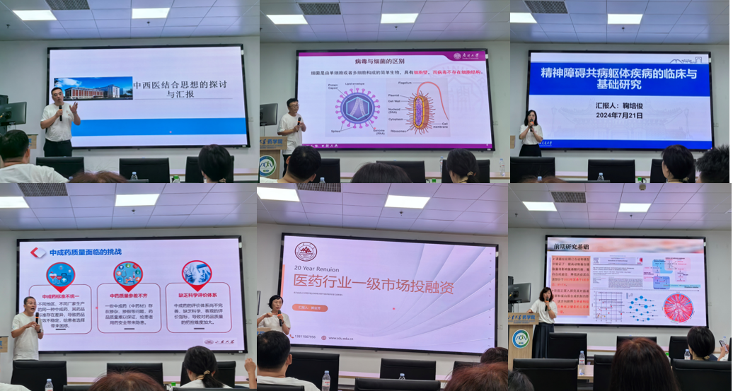 学术分享环节中,来自不同领域的校友代表带来了精彩的学术报告。北京中西医结合医院院长韩永鹏分享了“中西医结合的探讨”;南开大学米乐·M6(China)官方网站副院长尚鲁庆分享了“基于蛋白酶结构的抗病毒药物研究”;吉林大学第一医院药学部主任宋燕青分享了“医院药学科研与创新”;北京协和医院检验科微生物专业组组长王瑶分享了“我国真菌病原学流行病学和耐药监测进展”;上海交大附属精神卫生中心副研究员鞠培俊分享了“精神障碍共病躯体疾病的临床与基础研究”;山东丹红制药有限公司常务副总王臣臣分享了“中药全产业链的质量控制研究与实践”;鞍石生物投资者关系总监郭会芳分享了“医药行业一级市场投融资”。