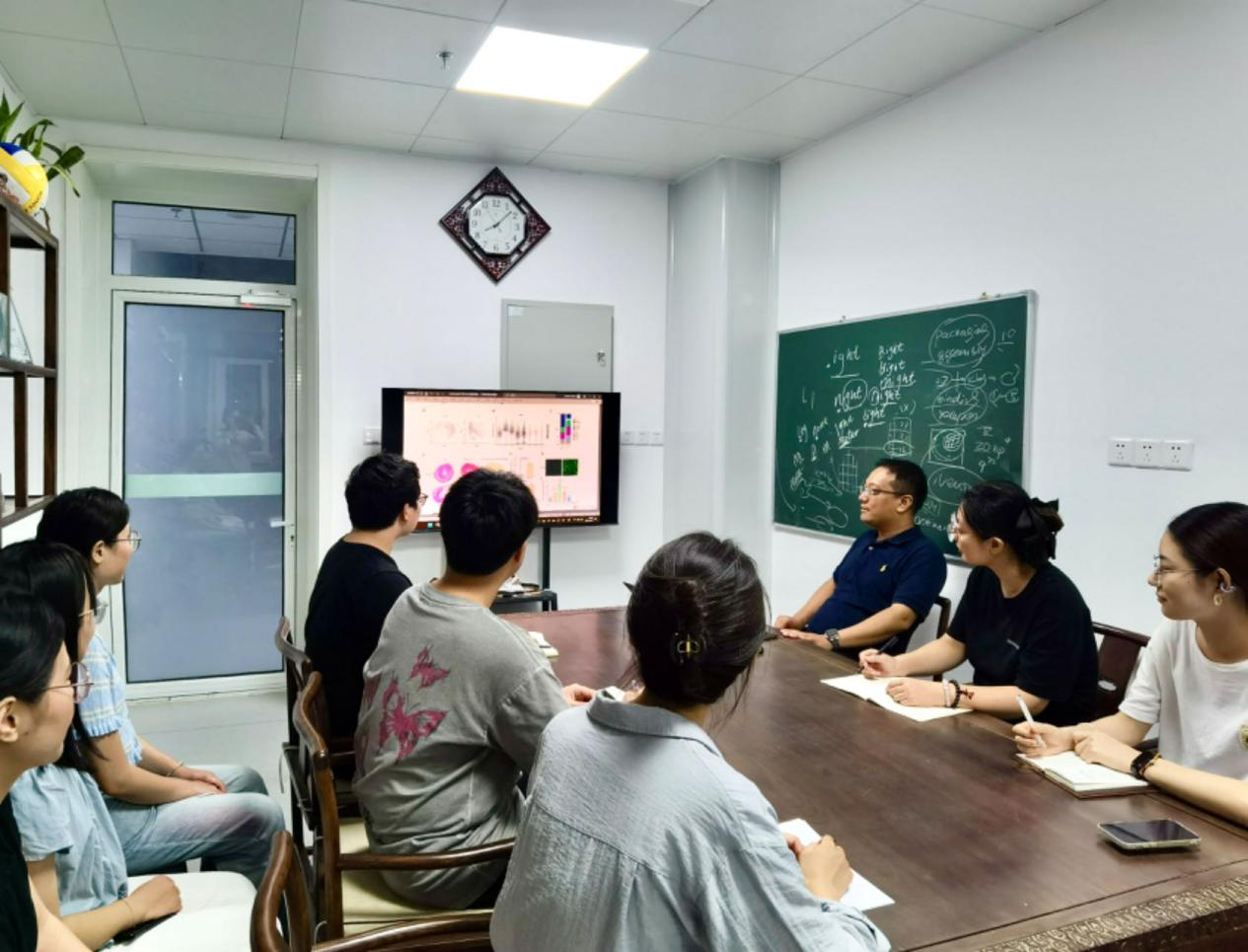 开学日,山东省靶向递药与高端制剂重点实验室智能材料与药物精准递送团队举行新学期第一次组会。国家杰出青年科学基金获得者姜新义教授与研究生们一起讨论核酸药物新型载体创新设计研发。