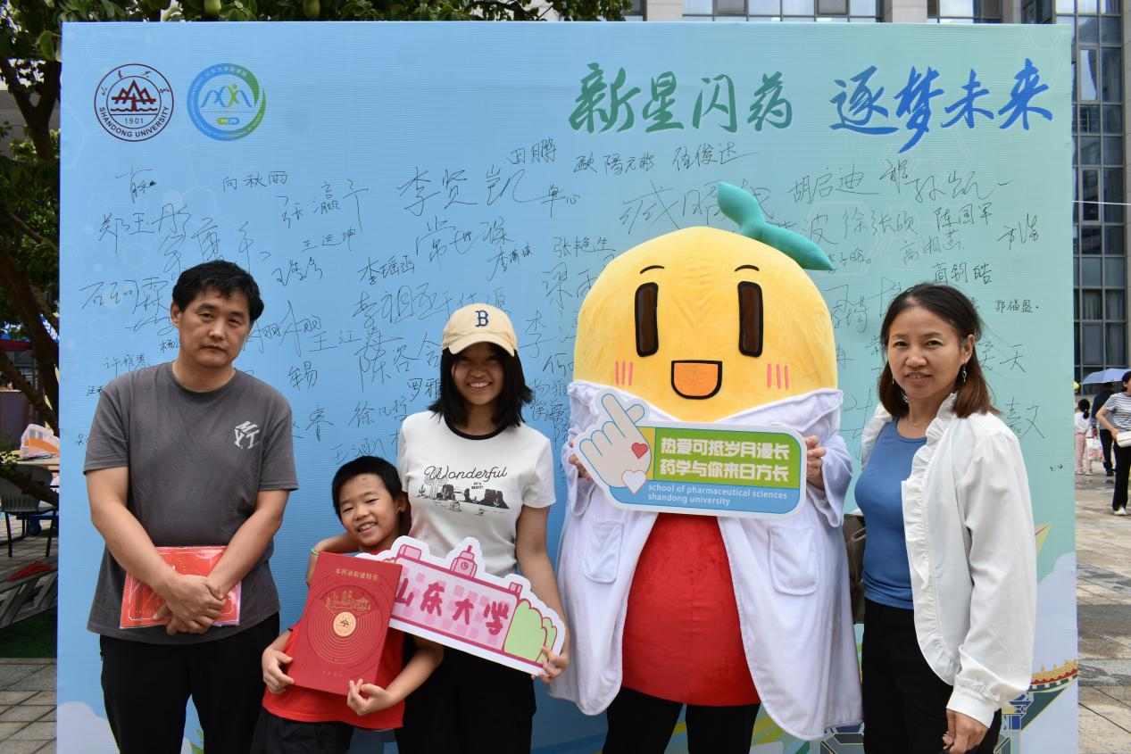 2024级新生和家长在学院展示墙前合影,定格与山大米乐·M6(China)官方网站的初印象。