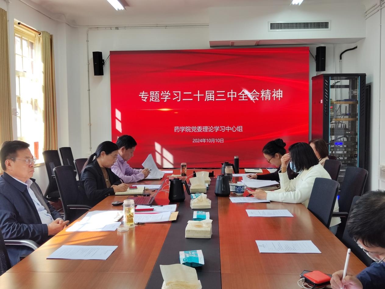 会上,党委委员张娜带领大家集体学习了二十届三中全会公报。会议指出,学习好贯彻好全会精神是当前和今后一个时期全党全国的一项重大政治任务。会议强调,要把深入学习领会全会精神与学习领会全国教育大会精神、学校第十五次党代会精神、学校领导班子暑期读书班和秋季学期工作会议精神贯穿起来,深刻领会和把握进一步全面深化改革的主题、重大原则、重大举措、根本保证,把进一步全面深化改革的战略部署转化为推进学院高质量发展的强大力量,用好改革关键一招,推进学院实现整体性跃升。全体党员干部要进一步提高政治站位,团结带领全体师生员工更加紧密地团结在以习近平同志为核心的党中央周围,高举改革开放旗帜,凝心聚力、奋发进取,为强国建设、民族复兴、强校兴国贡献山大药学力量。
