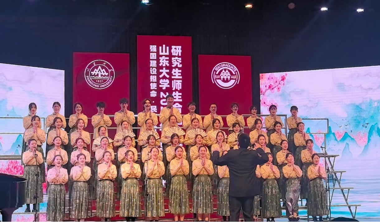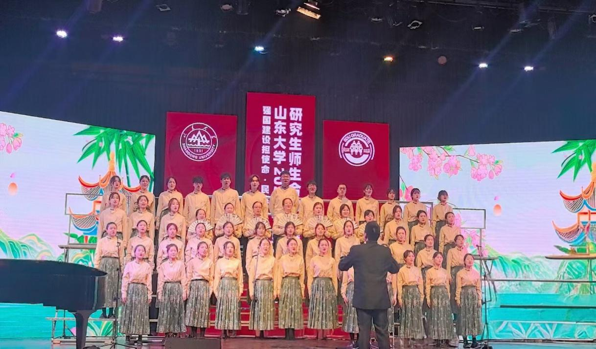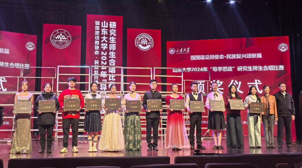 10月26日,山东大学2024年“导学思政”研究生师生合唱比赛在中心校区音乐厅举行,比赛以“强国建设担使命·民族复兴诵新篇”为主题,共28支学院代表队参与比赛。米乐·M6(China)官方网站代表队由李冬、蒋文洁、何文秀、李媛、付辉、孙越、杨璐萍7位老师以及47名研究生同学组成,凭借一首《上春山》展现了学院师生积极昂扬的精神风貌,获三等奖。