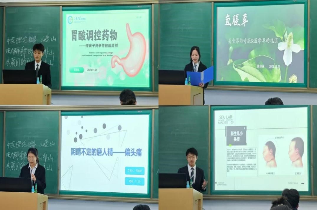 在药学讲坛演讲比赛中,各位参赛者围绕药学领域的热点话题展开了精彩纷呈的演讲。田梓溢深入剖析了阿片类止痛药物的成瘾性危害;侯祖林详细阐述了鱼腥草的营养价值、药用效果及当前研究前沿;李英飒具体介绍了马尔堡病毒的起源,症状及预防治疗措施;王锐涛介绍了类器官的形成过程及其在应用中的优缺点;杨耀涵则从新颖的角度剖析了中医理论在现代医药中的应用;张佳宁从虫药的神秘历史传说入手,展开对常见虫药的功效及炮制方法的介绍;乔姝妍围绕偏头痛的发病机制及治疗用药进行了深入浅出的讲解;贾宇航以富马酸伏诺拉生片为主详细讲述了胃酸调控药物的作用机制。评委根据演讲内容、表达清晰度、创新性等方面对每位参赛者进行了全面细致的现场评分。方浩对药学讲坛演讲比赛进行了简要而深刻的点评,高度赞扬了参赛者的精心准备和自信风采,并建议同学们在PPT制作和演讲时间把控上进一步精进。