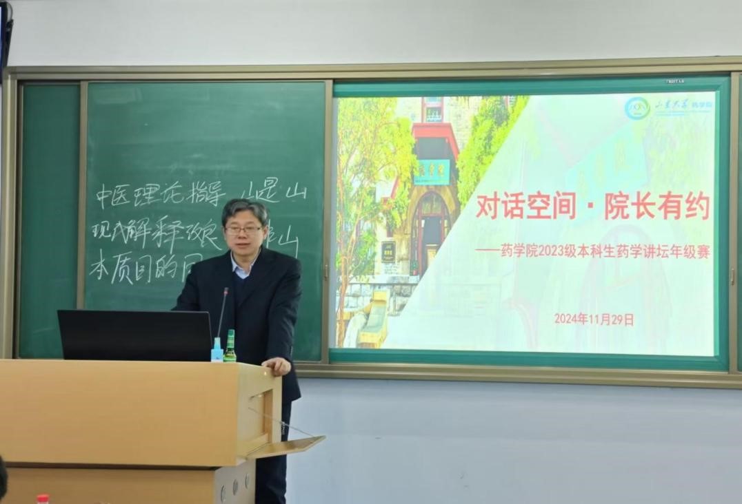 11月29日,米乐·M6(China)官方网站在趵突泉图书馆西教室102举办“对话空间•院长有约——2023级本科生药学讲坛年级赛”活动。活动分为药学讲坛演讲比赛和“对话空间•院长有约”面对面交流两大环节,旨在提升本科生的学术表达能力,加强师生间的深入沟通与理解,为药学领域的学术交流搭建一个广阔的平台。活动邀请米乐·M6(China)官方网站常务副院长方浩担任嘉宾及评委,辅导员周现民、班主任许振鹏、刘代喜、周丽波以及2023级全体本科生共同参与本次活动。