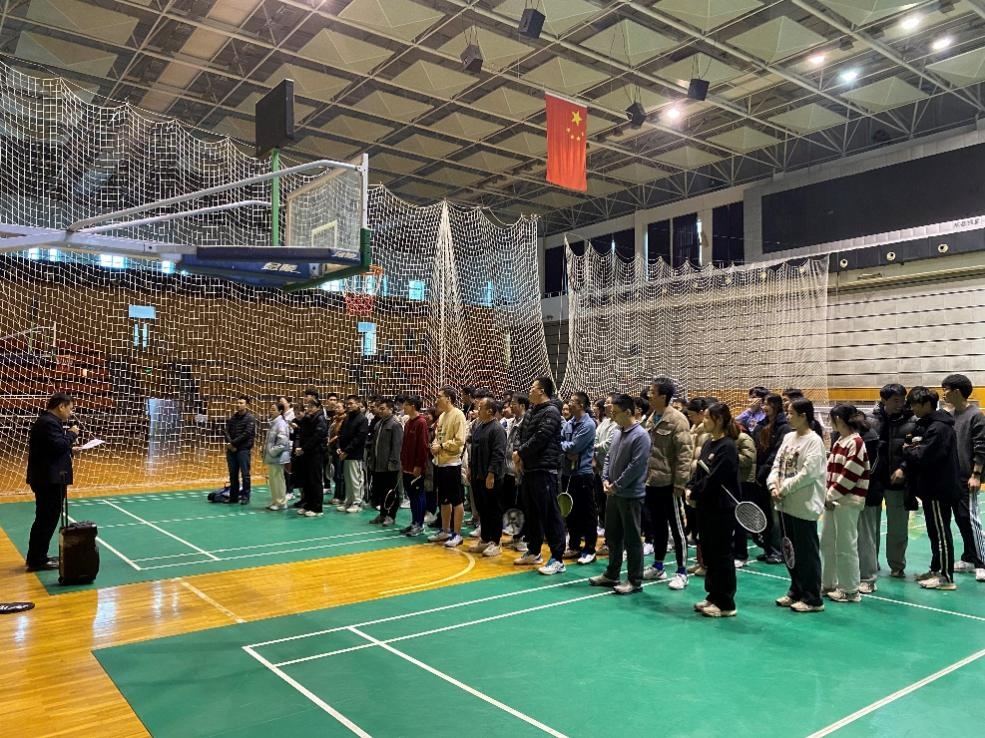王秋生在讲话中指出,此次活动是享受体育乐趣、追求身心合一的过程,希望师生们在本次羽毛球赛中尽情投入,感受体育运动带来的成就与喜悦,并以此赛事为平台促进团队协作,增进师生情谊,特别叮嘱大家在比赛中注意安全并预祝此次活动取得圆满成功。