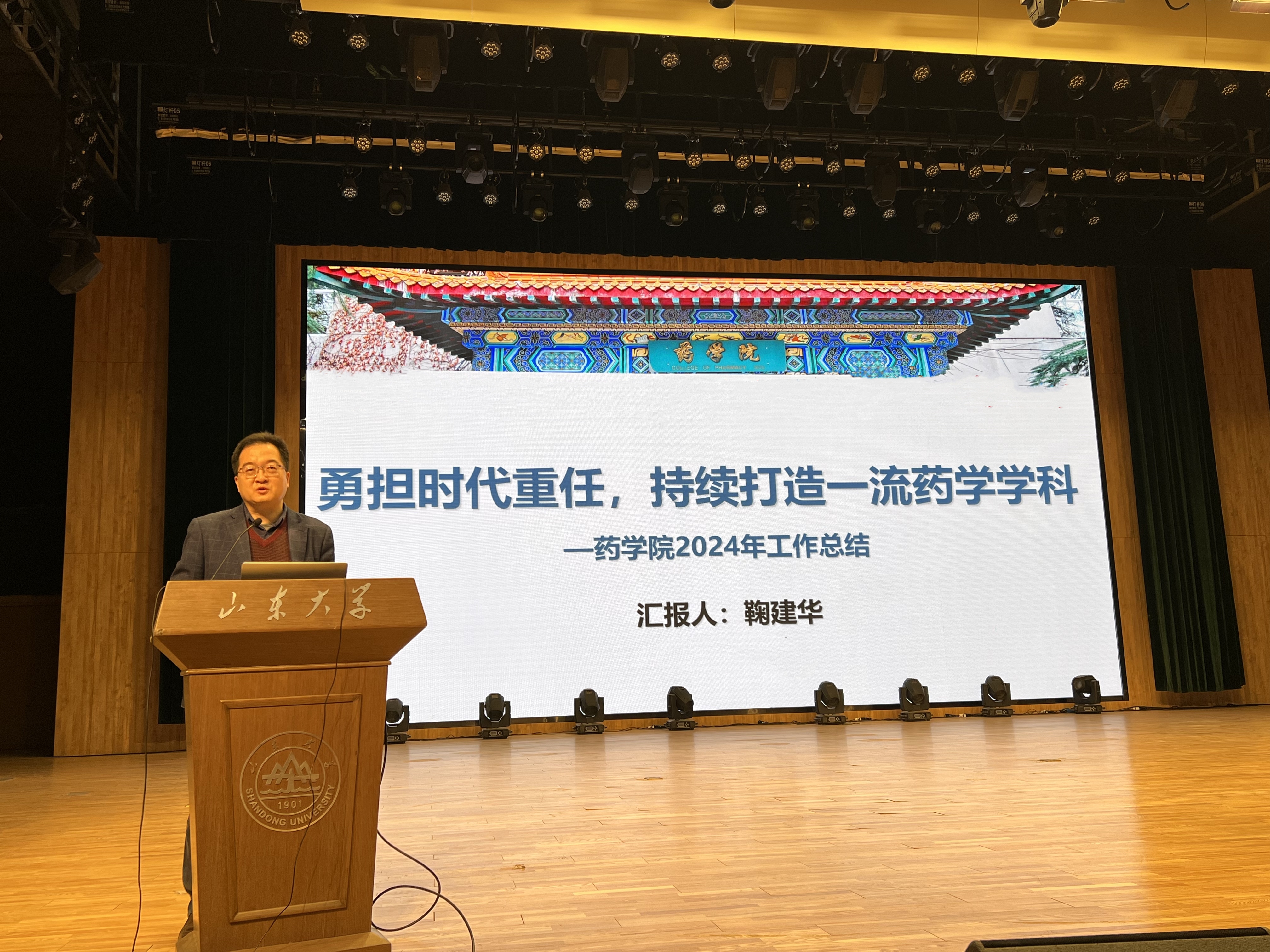 鞠建华全面回顾了过去一年学院事业发展情况,对学院全体教职工的辛勤付出表示感谢。他针对制约学院高质量发展存在的突出问题提出了解决思路和举措,重点介绍了学院一体化发展战略和2025年工作重点,并围绕学科建设、人事人才、科学研究、人才培养、实验室安全等方面对近期具体工作作出全面部署。