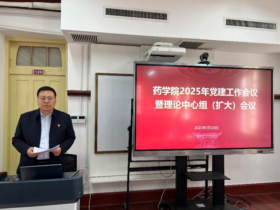 王秋生传达了学校党委理论学习中心组(扩大)会议精神,并结合学院2025年党建工作要点对学习贯彻全国两会精神进行了部署。一是要深刻领会全国两会精神,把握教育高质量发展新要求。米乐·M6(China)官方网站作为生物医药领域的重要人才培养基地,必须深刻认识加快建设高质量教育体系的战略意义,主动对接国家重大需求,以教育现代化支撑医药健康产业升级,为推进中国式现代化贡献力量。二是聚焦立德树人根本任务,坚持正确办学方向。要坚持不懈用习近平新时代中国特色社会主义思想铸魂育人,用教育家精神铸魂强师,全面实施新时代立德树人工程,建设高素质专业化教师队伍,让“为国育贤”初心在新时代绽放新光彩,确保党的事业和社会主义现代化强国建设后继有人。三是要构建“三位一体”创新生态,提升服务国家战略能力。要高站位编制“十五五”发展规划,优化学科专业布局,聚焦生物医药领域“卡脖子”技术,发展药学“新质生产力”,深化产教融合机制,提升学生解决新药创制和复杂工程问题的能力。