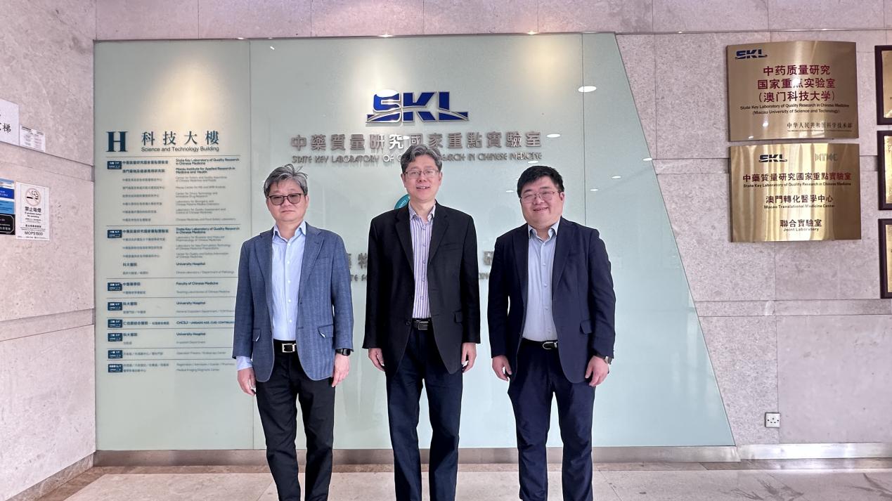 近日,米乐·M6(China)官方网站常务副院长方浩教授、副院长李敏勇教授、临床药理研究所所长赵维教授一行应邀访问澳门大学及其中药质量研究国家重点实验室,围绕中医药创新研究、学科建设、人才培养及国家重点实验室协同发展等议题开展深入交流,进一步推动两院及国家级科研平台间的深度合作。