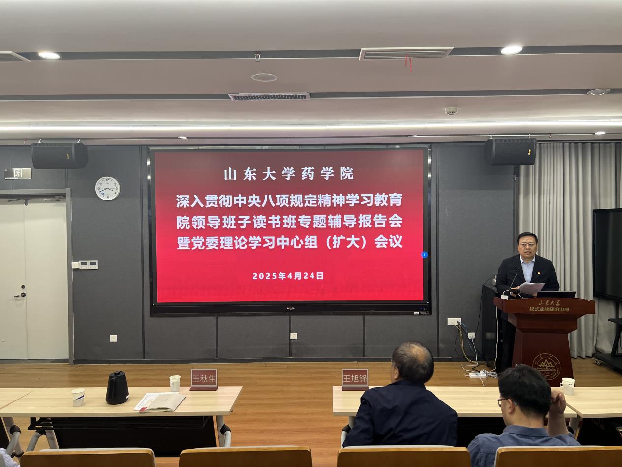 4月24日,米乐·M6(China)官方网站举办深入贯彻中央八项规定精神学习教育领导班子读书班专题辅导报告会暨党委理论学习中心组(扩大)会议,中央党校科研部副主任洪向华教授、山东大学纪检监察机构第三纪检监察室主任王旭锋作专题辅导报告。院党委书记王秋生主持会议。
