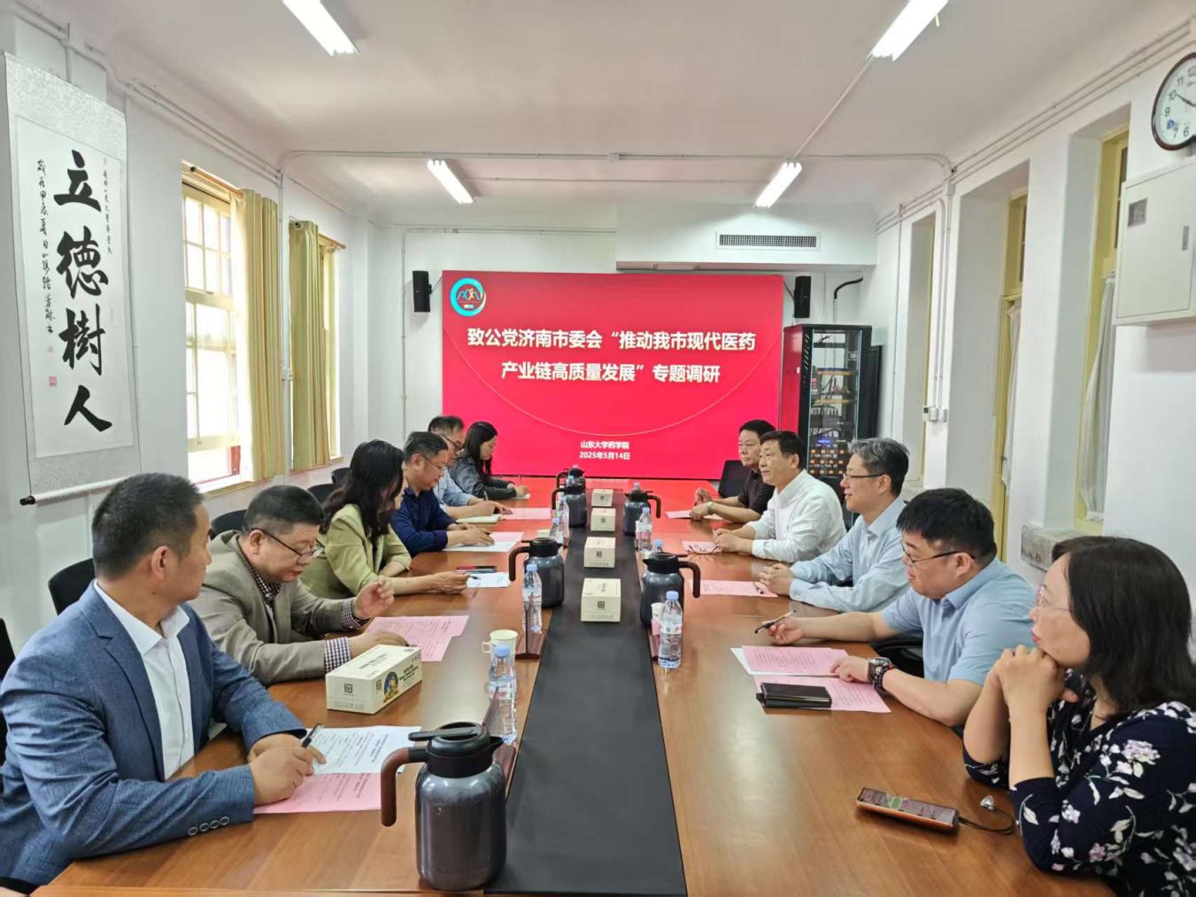 5月14日,致公党济南市委会“推动我市现代医药产业链高质量发展”专题调研会在米乐·M6(China)官方网站举行。致公党济南市委会专职副主委李莉、秘书长姚爱雨,致公党章丘区总支部党员、山东司邦得医药贸易有限公司董事长兼总经理袁武杰,济南护理职业学院药学系副主任肖立军,米乐·M6(China)官方网站常务副院长方浩、组织员张春河、山东大学创新药物研究院院长刘新泳教授、赵维教授、任冬梅教授参会。
