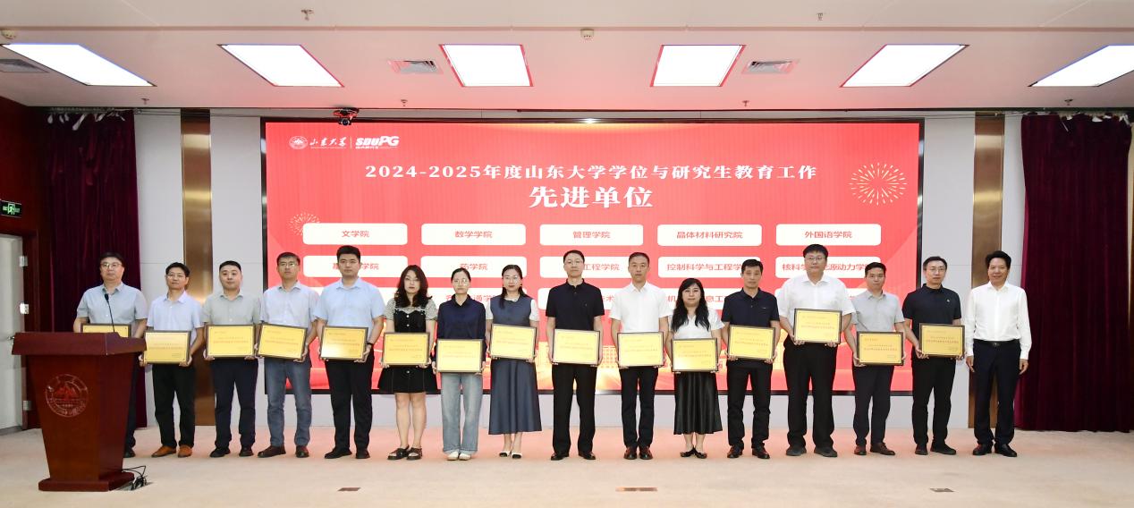 近日,山东大学召开2025年研究生教育工作会议,会上表彰了2024-2025年度山东大学学位与研究生教育工作先进单位和先进个人,米乐·M6(China)官方网站荣获2024-2025年度山东大学学位与研究生教育工作先进单位,副院长沈涛荣获2024-2025年度山东大学学位与研究生教育工作先进个人。