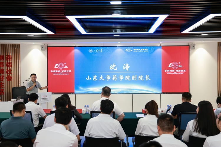 沈涛介绍了学院基本情况,回顾了学院与鲁南制药20余年的战略合作与深厚友谊。他指出,双方从共建山大-鲁南天然药物研究院,到联合承担国家重点研发计划,再到共育、共引高端人才,在产学研用深度融合领域结出了累累硕果。他表示,学院本次课程体系进行了精心设计与优化,旨在最大程度保障在职学员工学兼顾,确保人才培养质量。沈涛对全体学员提出殷切期望,希望学员珍惜深造机会,秉持严谨端正的科研态度,在后续科研实践中注重将丰富的工作经验与前沿理论学习深度融合。要坚持学以致用,通过高质量的学习切实提升自身专业素养与实践核心竞争力,更好地服务于企业发展,为中国医药健康事业贡献力量。