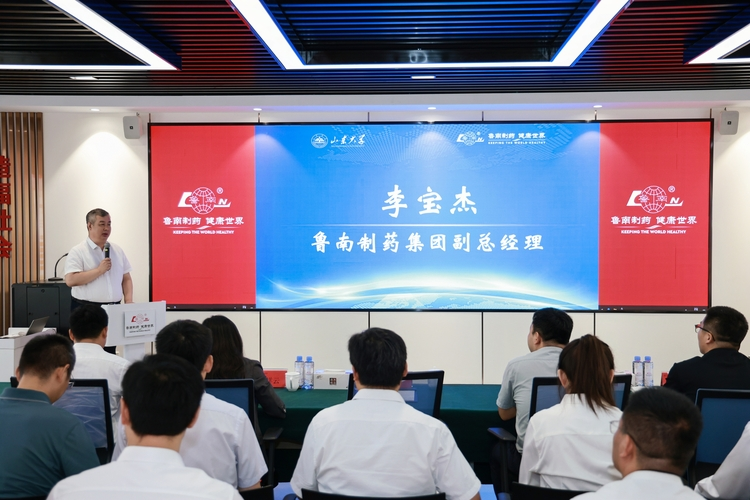 李宝杰介绍了多位山东大学优秀校友在鲁南制药关键岗位上作出的突出贡献,充分肯定了双方校企合作在高质量人才输送与融合方面取得的显著成效。李宝杰强调,此次硕士班的举办是双方合作模式的又一次创新举措。他对全体学员提出要求,要牢记“百战归来再读书”的初心,端正学习态度,将自身丰富的实践经验与前沿理论深度融合,为鲁南制药的战略发展与企业梦想贡献更大价值。