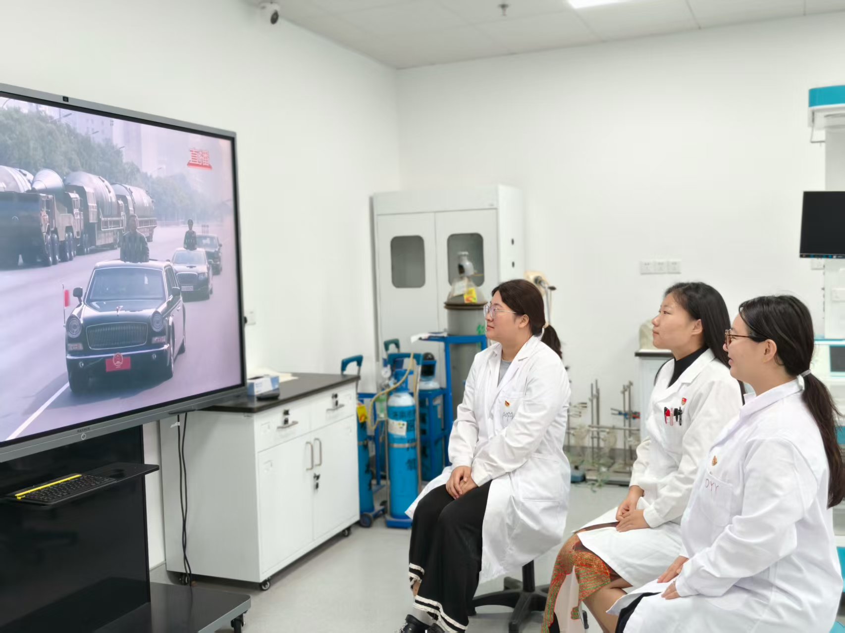 研究生第八党支部书记卢慧嫒表示:我们以盛大阅兵纪念抗战伟大胜利,就是要铭记历史、缅怀先烈、珍爱和平、开创未来。作为新时代青年,我深知历史的厚重与责任,也更加坚定了为实现中华民族伟大复兴而努力奋斗的决心。我将以此次阅兵为动力,不断提升自身科研能力与综合素质,为国家的科技进步和人民健康事业贡献力量。同时积极发挥党员先锋模范作用,团结带领支部成员,共同为实现中华民族伟大复兴的中国梦而不懈奋斗。