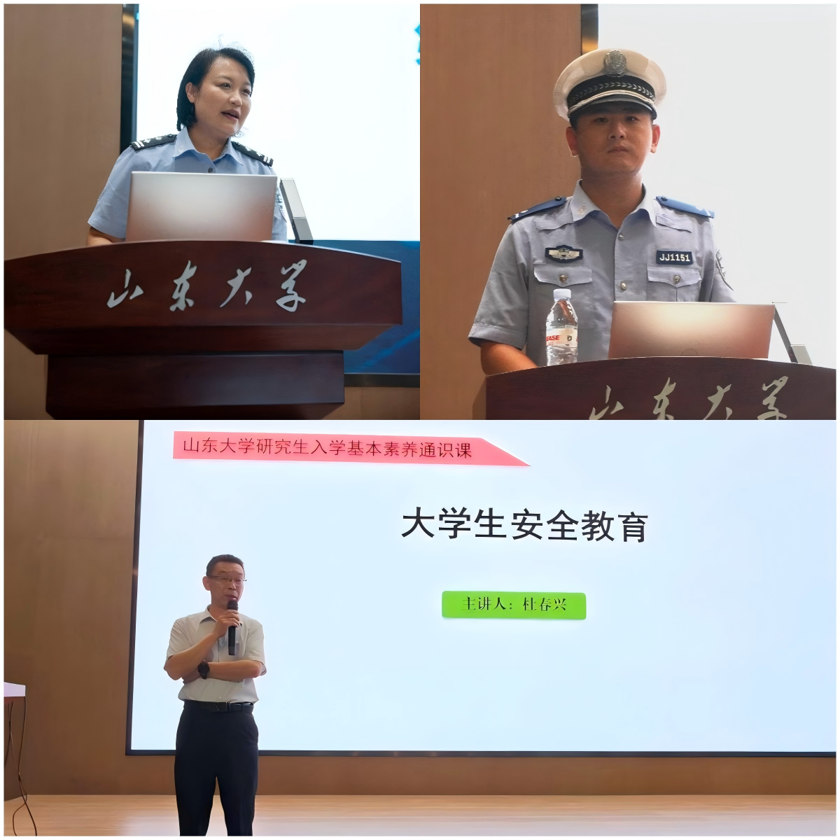 强化底线思维,以“安全+”构建防护体系。趵突泉校区保卫处杜春兴老师结合多起校园消防安全、宿舍安全的典型案例,以真实事件敲响安全警钟,引发同学们对校园安全的深刻思考。杜老师现场细致讲解灭火器的使用步骤,让理论知识化作可操作的实践技能。趵突泉派出所副所长王俐开展防范电信诈骗专题讲座,重点围绕网络诈骗的辨别与防护知识,通过真实案例分析,进一步增强学生的安全意识。千佛山中队李佳伟警官以“守护生命安全线——大学生交通安全必修课”为主题,结合一系列交通安全视频,重点强调骑行过程中佩戴头盔的重要性,为同学们敲响了交通安全的警钟。