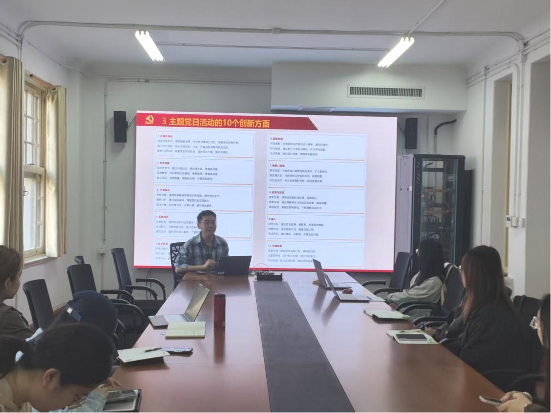 研究生第二党支部书记刘金虎以“如何开展主题党日活动”为主题展开深入讲解,强调了主题党日活动的重要性和基本要求,从十个方面解析了主题党日活动的创新点。他通过梳理活动策划逻辑、分享典型案例,为各支部打造既有趣味性又能贴合学生实际需求的党日活动提供了多维度的思路。