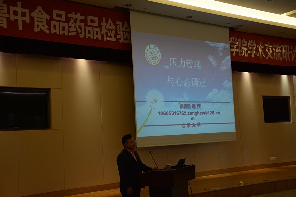 随后,米乐·M6(China)官方网站制药工程与药事管理学教研室主任、硕士生导师臧恒昌教授做了《压力管理与心态调适》的专题报告。臧教授利用大量的案例和科学论证,对压力源的产生和如何进行压力管理进行分析,告诉我们如何正确的对待压力,有效消除压力,并利用压力调适作为管理工具提升个人和团队的成绩,提高团队的凝聚力和活力。幽默的语言,风趣的谈吐,给现场带来轻松气氛的同时,也给我们带来了富有哲理性的思考。