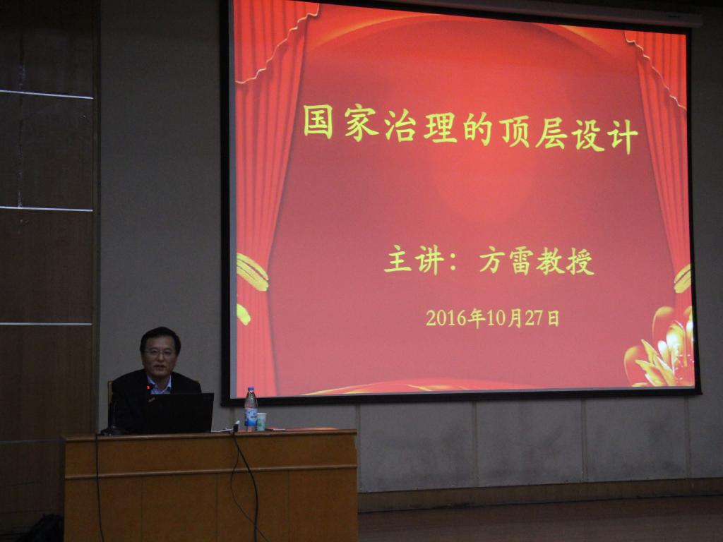 为深入开展“两学一做”学习教育,10月27日,米乐·M6(China)官方网站举行了题为《国家治理的顶层设计》的专题党课学习教育。马克思主义学院博士生导师、副院长方雷教授为米乐·M6(China)官方网站全体教师和学生党员作报告,米乐·M6(China)官方网站党委副书记张慧主持报告。